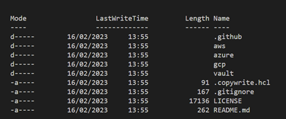 If we look in the cloned folder, we can see that HashiCorp have provided examples for all three major cloud providers, and for HashiCorp Vault.